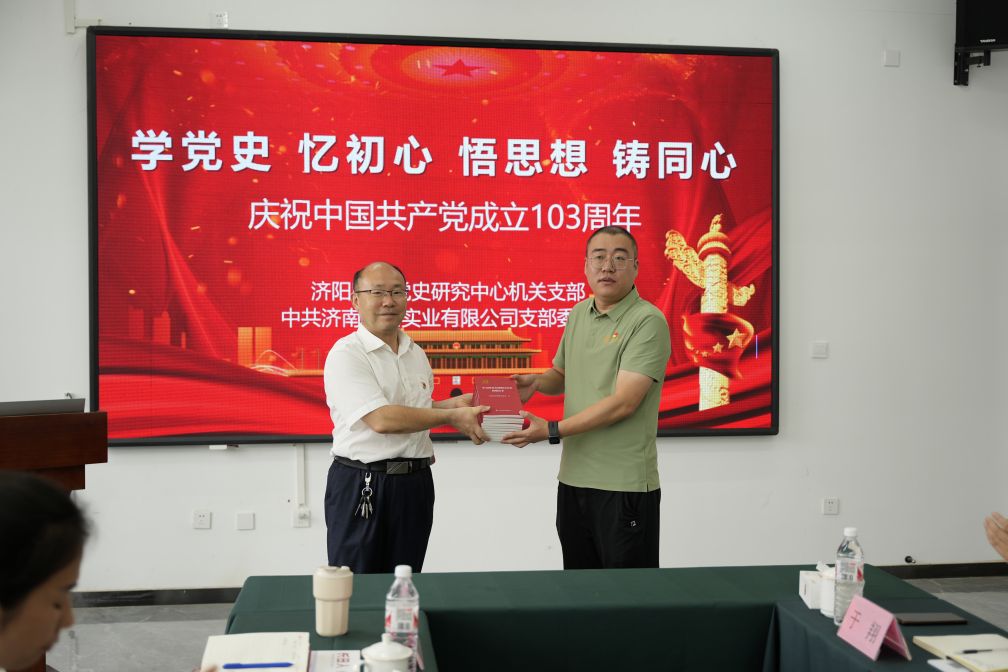 濟陽區(qū)委黨史研究中心主任王四彥代表濟陽區(qū)委黨史研究中心機關支部向中共濟南長田實業(yè)有限公司支部委員會贈送珍貴的黨史資料《中共濟南市濟陽區(qū)歷史簡明讀本》,為了解濟陽地方歷史文化、學習地方黨史等提供了可靠、可信的資料;為黨史文化和革命精神在企業(yè)普及傳承提供重要的精神食糧,希望這些書籍能夠發(fā)揮應有作用,讓廣大干部群眾特別是年輕黨員干部接受紅色文化熏陶,讓紅色基因代代相傳。