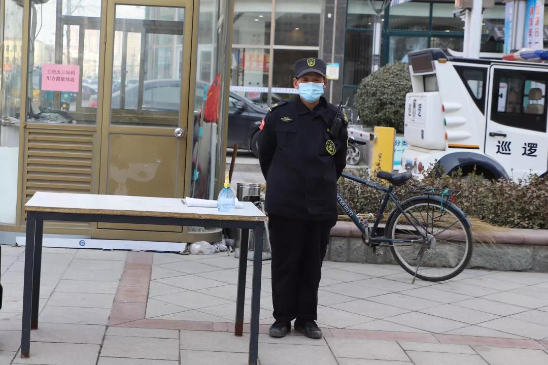 ▲臨危不懼 沖鋒在前:小區(qū)門(mén)崗是“前線”,這里既重要也危險(xiǎn),但他們始終堅(jiān)守,對(duì)每一位業(yè)主負(fù)責(zé)。在各個(gè)門(mén)崗放置消毒液,做好人員測(cè)溫登記,并做好外來(lái)車輛記錄表。