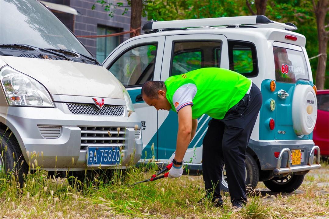 大家分工有序,帶著手持夾子、掃帚、鏟子等工具,地毯式清理了小區(qū)地面、花壇上、草坪里的紙屑、飲料瓶、雜草等垃圾,排查小區(qū)內(nèi)的衛(wèi)生死角。