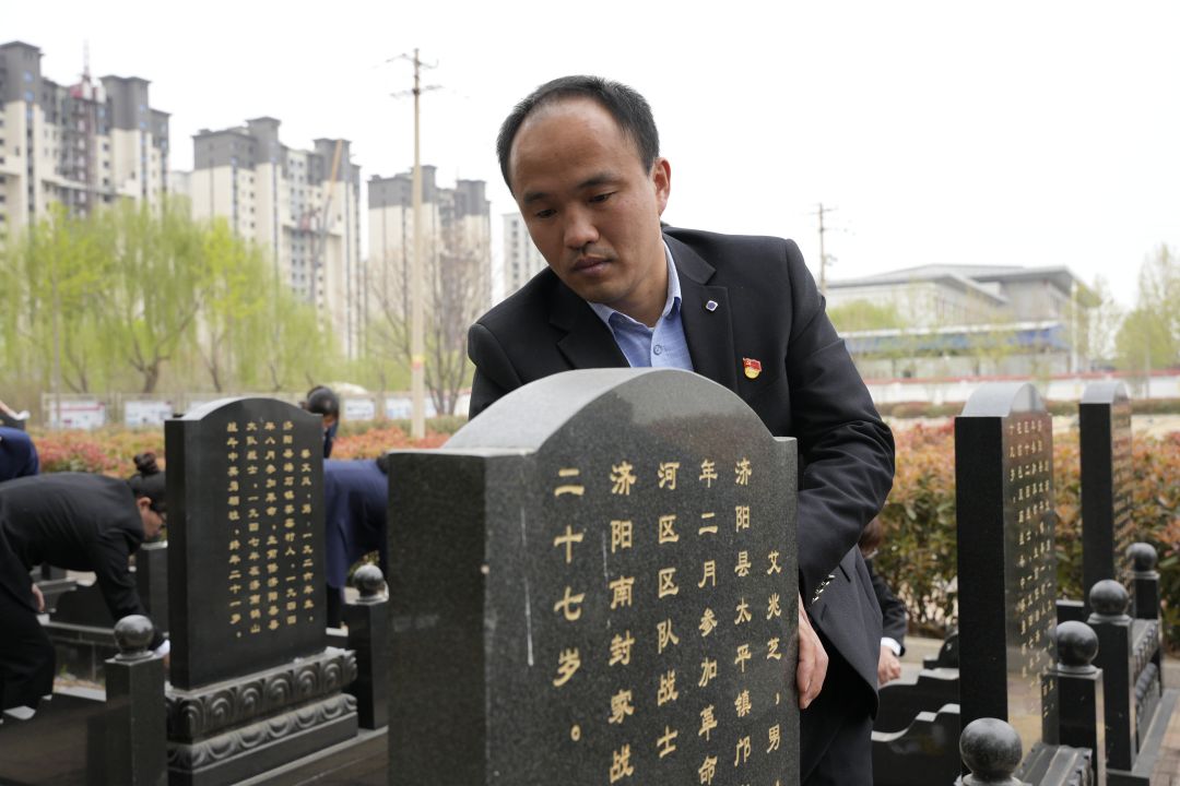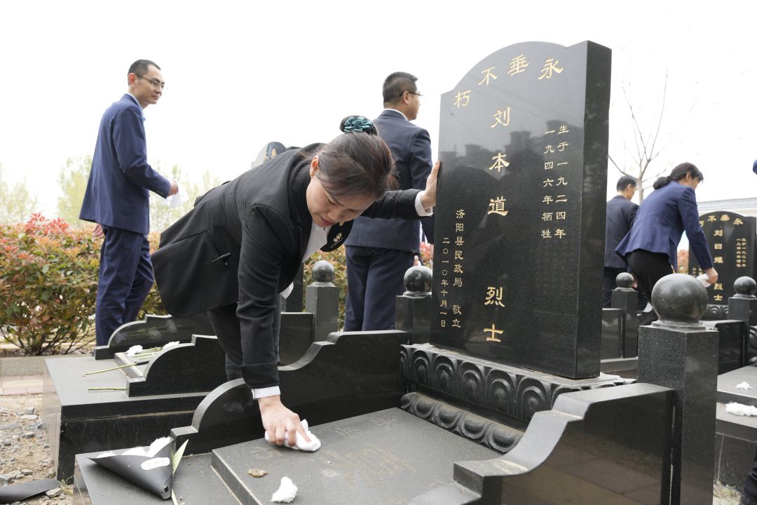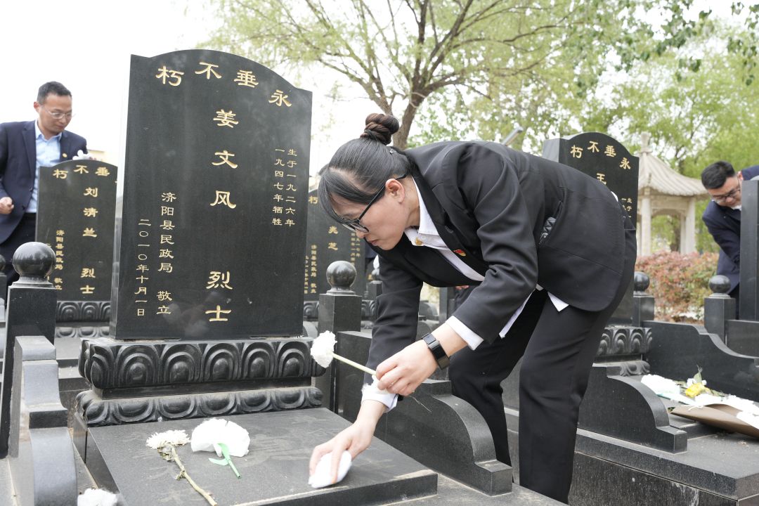 一塊墓碑、一段往事、一串印記,詮釋著一份沉甸甸的責(zé)任。大家在張總的帶領(lǐng)下清掃烈士墓區(qū),對烈士墓碑進(jìn)行仔細(xì)擦拭,對墓碑周圍的地面進(jìn)行清掃,用實(shí)際行動(dòng)緬懷革命先烈。