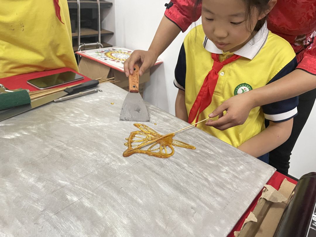 以勺為筆、以糖為墨,筆走龍蛇、糖傾河漢。由市級(jí)非遺項(xiàng)目糖畫傳承人李老師帶領(lǐng)大家走進(jìn)中國(guó)糖畫。甘甜的糖不僅僅是文化的傳承,更是甜蜜的藝術(shù),為小朋友們勾勒出童年的甜蜜時(shí)光。