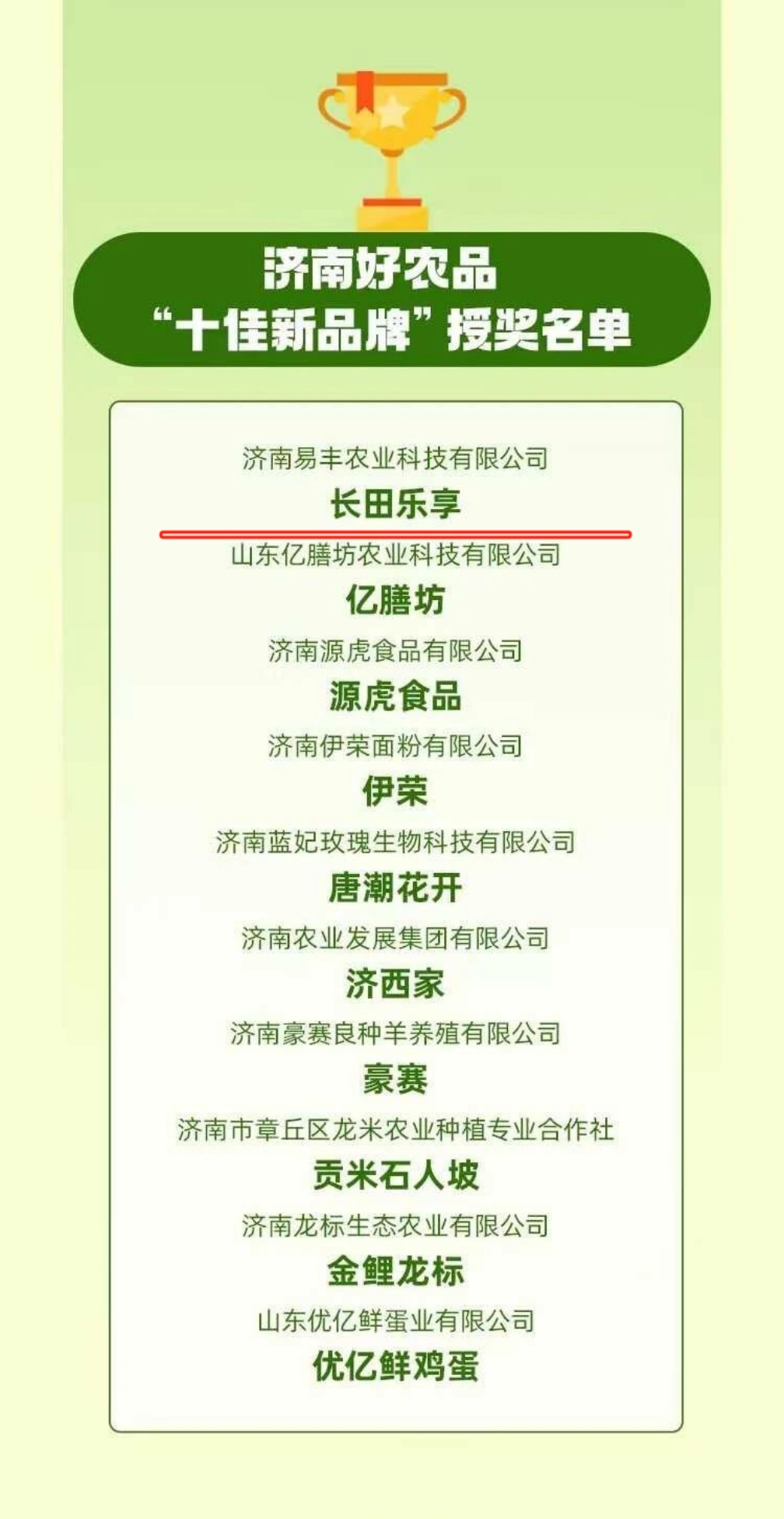 3月31日,首屆“濟(jì)南好農(nóng)品”品牌評選結(jié)果正式揭曉,在濟(jì)南市農(nóng)業(yè)農(nóng)村局指導(dǎo)、市農(nóng)業(yè)產(chǎn)業(yè)協(xié)會主辦的這項權(quán)威評選活動中,長田樂享谷物超鮮蛋從眾多參評企業(yè)中脫穎而出,成功入選“十佳新品牌”。這標(biāo)志著政府及市民對長田樂享品質(zhì)的高度認(rèn)可。
