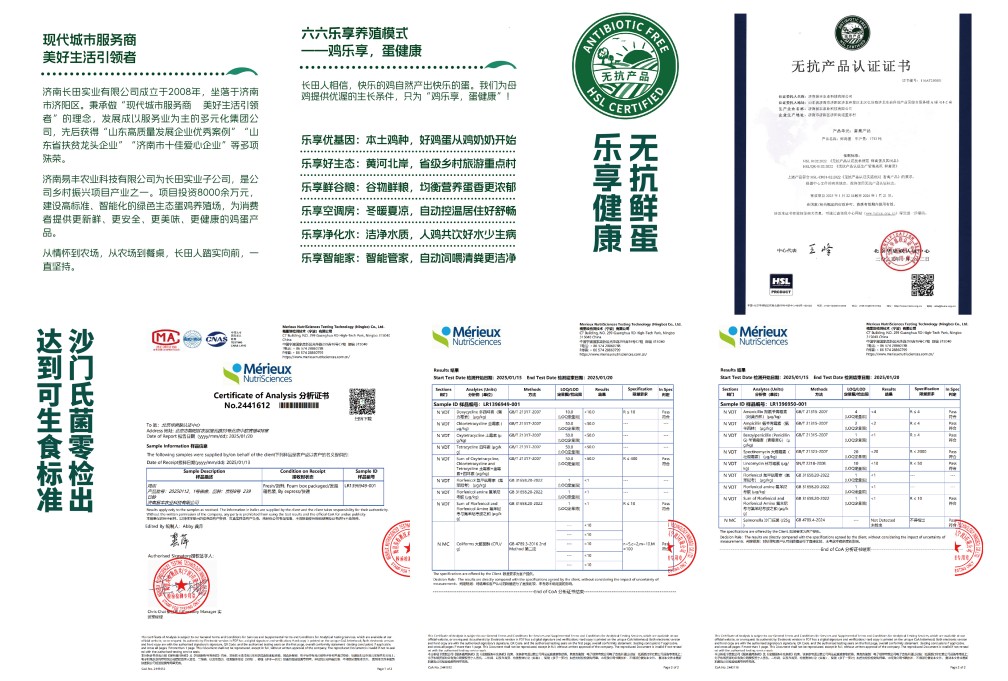區(qū)別于傳統(tǒng)養(yǎng)殖模式,長田樂享創(chuàng)新構(gòu)建“六六樂享養(yǎng)殖體系”,以“優(yōu)基因、好生態(tài)、鮮谷糧、空調(diào)房、凈化水、智能家”打造高標(biāo)準(zhǔn)養(yǎng)殖體系。產(chǎn)品全程不添加激素和抗生素,配備蛋品清洗分級設(shè)備,嚴(yán)格把控品質(zhì),確保產(chǎn)品在消費者手中的新鮮度和安全性。長田樂享超鮮蛋獲得無抗產(chǎn)品認(rèn)證。