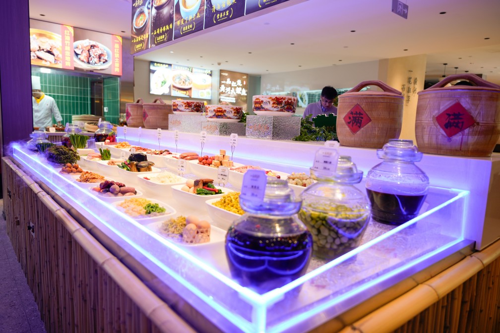 獨具匠心之處在于,一品黃河20個包間以黃河所流經(jīng)的九個省份和進(jìn)入山東省后所流經(jīng)的九個市的名稱命名,房間內(nèi)軟裝如掛畫等體現(xiàn)沿黃省份、城市的文化特征,并通過桌卡形式全面呈現(xiàn)文化內(nèi)涵,將黃河文化具象為沉浸式餐飲體驗。比如山東廳懸掛的是山東具有代表性的非遺文化代表作--魯錦,魯錦的每一梭都是對自然的敬畏,每一紋都是對生活的期許;黃河源頭青海廳懸掛的是青海省具有代表性的非遺文化代表作熱貢唐卡;四川廳懸掛的是四川具有代表性的非遺文化代表作蜀繡做成的熊貓壁畫;有“天下黃河富寧夏”之說的寧夏廳,懸掛的是寧夏最具代表性的非遺文化產(chǎn)品回民剪紙等等。讓每一餐都成為一場文化之旅。